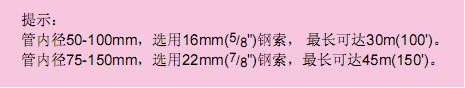 疏通能力:管内径30-150mm(11/4"-6") 最大可达45m(150′) 紧凑型机器设计,适合于科研院所、商业机构或居民小区的管道清理。小巧的机身适合于狭窄的空间下使用,动力强劲可以清除坚硬的堵塞物。也可用于屋顶通风管道清理,它尾部的把手可以使操作者非常方便的通过扶梯搬运到屋顶。 特性与技术参数: • 独特、易于使用的钢索离合器可以瞬间传递扭矩使钢索旋 转,使操作者非常容易操控。 -压下手柄,钢索转速可达600RPM。 -释放手柄,钢索立即停止转动,不会过度旋转以至于发生 缠绕而损坏钢索。 • 简易的调节装置可以使机器适应两种直径的钢索,7/8" (22mm)和5/8" (16mm),且只需几秒钟即可完成调整工作: • 只需拆下两个螺栓即可取下颚爪进行清洁或更换,同样也可以调整驱动皮带。 • 中置下压手柄设计,提升工作稳定性。 • 230V,700W可反转感应电机。 • 标配A-1手套和操作手册。