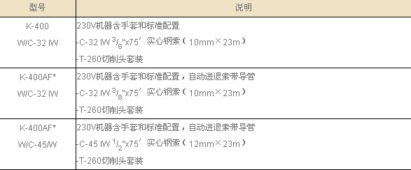 鼓轮容量:10mm(3/8")的钢索,最长30m(100′) 12mm(1/2")的钢索,最长23m(75′) 电机:230V正反转,单相380W 负载钢索转速:165RPM