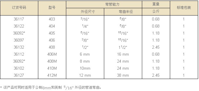 ·专为弯曲铜管、钢管和不锈钢管(壁厚<1.5mm)设计。·平行偏置的带塑胶套手柄可以避免180°弯曲时手指受伤。·90°起始角和独特的吸油性导向滑块,在精确弯曲铜管、钢管、不锈钢管时可将弯曲力减至最小。
