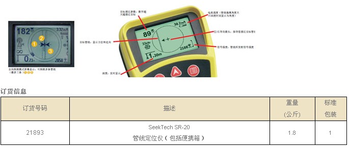 SeekTech SR-20管线定位仪,采用最新专利技术的全向天线,可通过图形化管线显示及导向箭头等信息,实现快速精确定位,满足高端用户的需求,主要应用于管线定位,也可定位信号发生器。