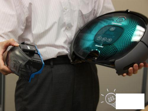 在效率和电量上,东芝宣称一次充电最多可以用90分钟,而这90分钟可以打扫约100㎡。如果Smarbo发觉自己快没电了,会自动寻找充电底座,靠过去充电。(好像萌了?)