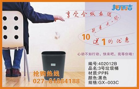 编号:402012B品名:3号垃圾桶材质:PP料颜色:黑色规格:GX-003C
